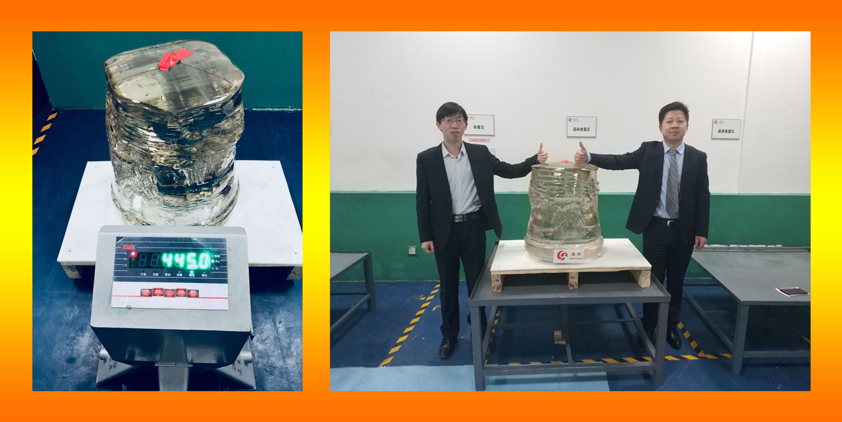 2017年,公司成功生長了300公斤級(jí)超大尺寸藍(lán)寶石晶體,并實(shí)現(xiàn)了200公斤和250公斤晶體的規(guī)模量產(chǎn)。此次成功研發(fā)的450公斤級(jí)超大尺寸藍(lán)寶石晶體,經(jīng)過了近8個(gè)月的設(shè)計(jì)開發(fā)、設(shè)備加工、煅燒、長晶等過程,對(duì)公司進(jìn)一步提升藍(lán)寶石成本優(yōu)勢,增強(qiáng)產(chǎn)業(yè)核心競爭力具有重大意義。